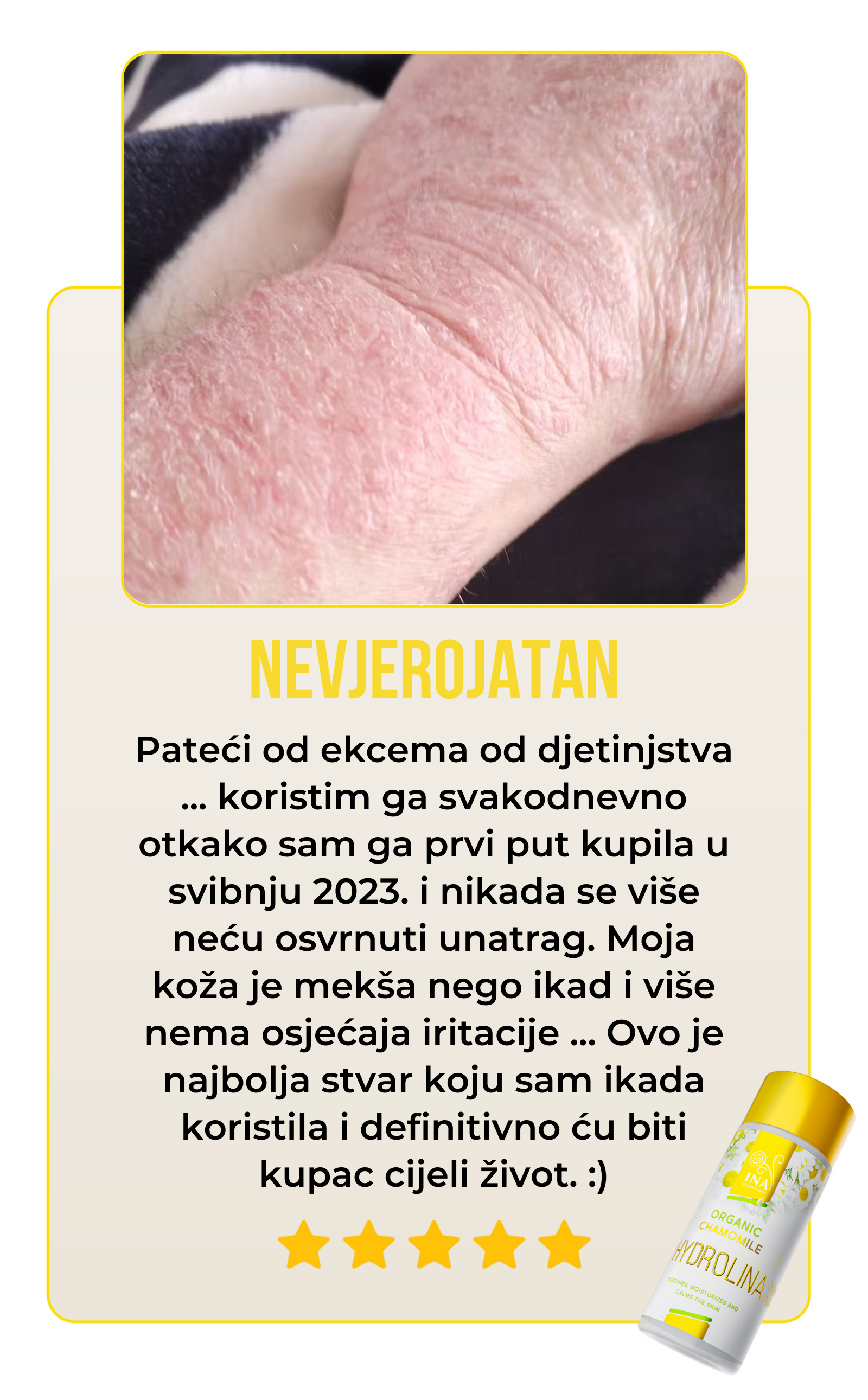 Naša RoutINA™ ima više od samo lijepog pakiranja, ona ima dokazane rezultate. Postigavši nevjerojatnu stopu zadovoljstva kupaca od preko 90%, ovi su proizvodi pokazali svoju učinkovitost u ublažavanju ekcema, dermatitisa, osipa i rana, a istovremeno promiču cjelokupno zdravlje kože. Nemojte nam samo vjerovati na riječ, pročitajte priče naših klijenata: OVDJE.
