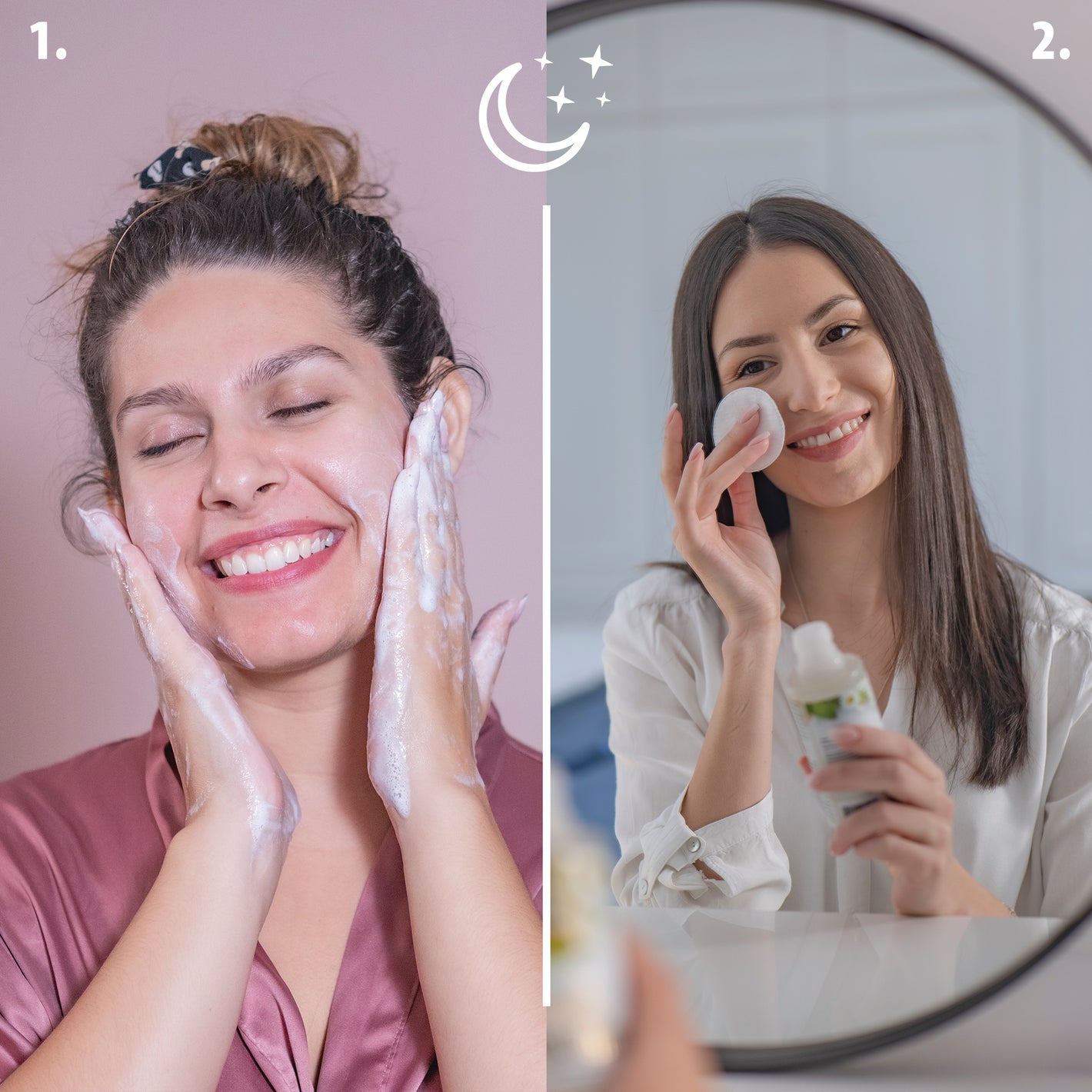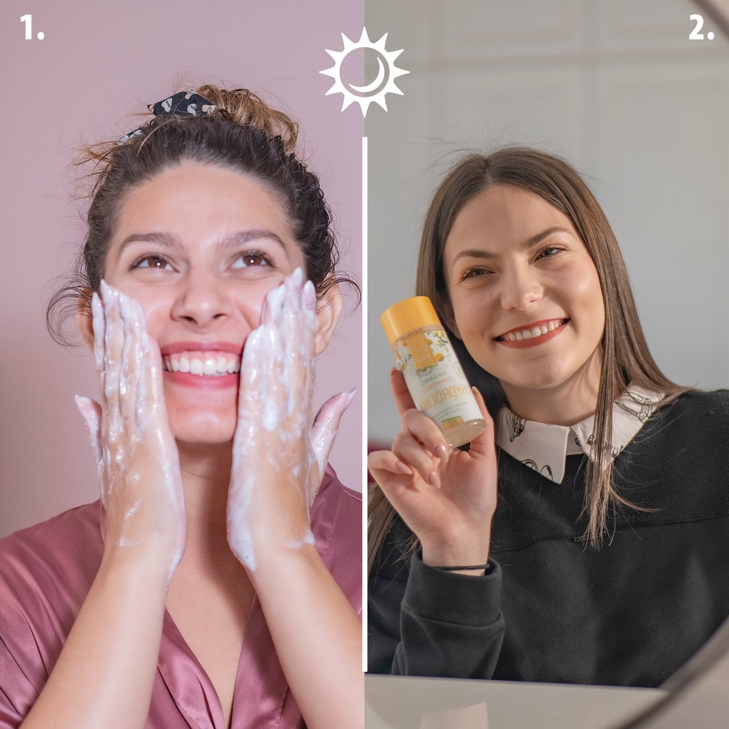 - Korak 1: Navečer ponovite čišćenje našim biljnim sapunom od kamilice kako biste isprali dnevne onečišćenje.