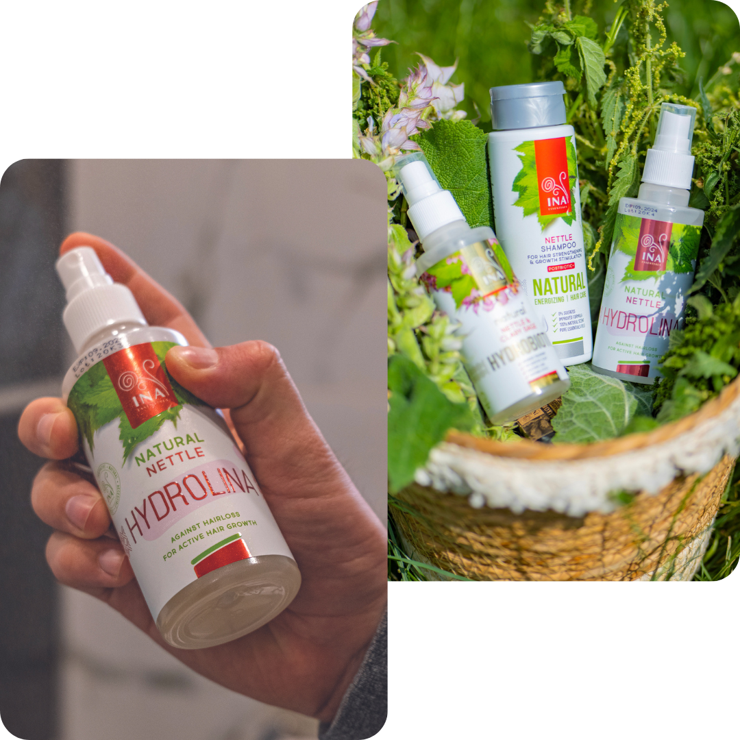 - Korak 1: Započnite dan primjenom naše 100% organske vode od divlje koprive - Hydrolina. Njegova snažna svojstva potiču rast kose, bore se protiv mašćenja i njeguju kosu od korijena. Organska divlja kopriva Hydrolina RoutINA™ je čvrsta baza za rast vaše kose dok je održava svježom i snažnom.